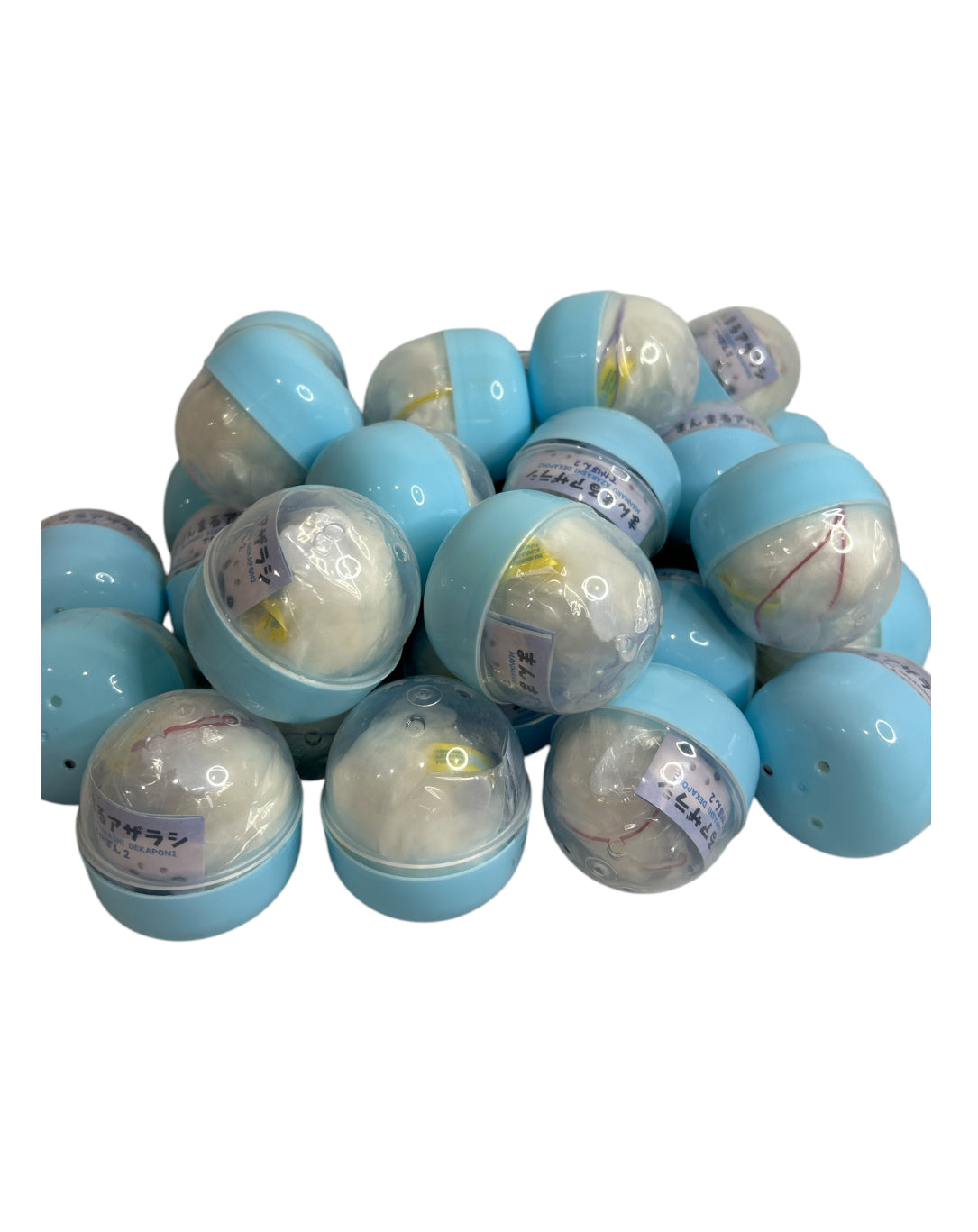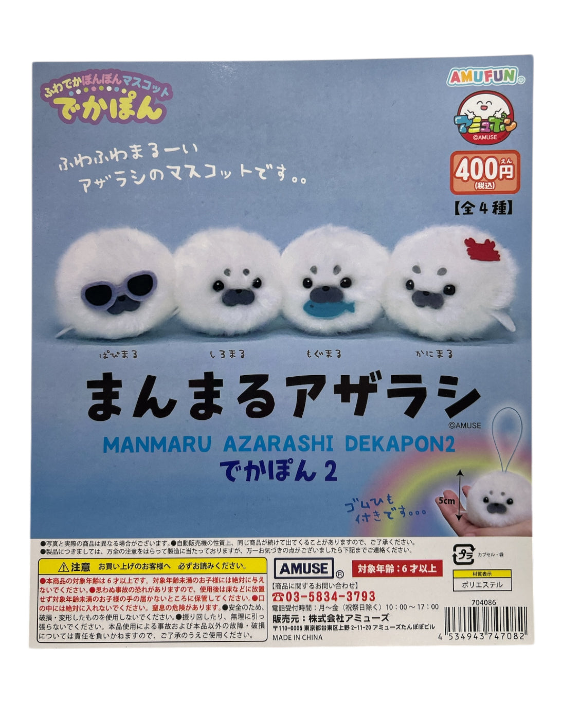 Indulge in the cuteness overload with Fluffy Manmaru Seals Gashapon keychains! Each surprise toy capsule contains a fluffy Manmaru seal, guaranteed to bring a smile to your face. Perfect for collectors or as a cute playful gift. (Warning: may cause excessive "awws" and cuteness overload.)