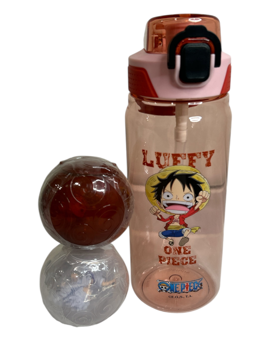 One piece Luffy water bottle and two Gashapons