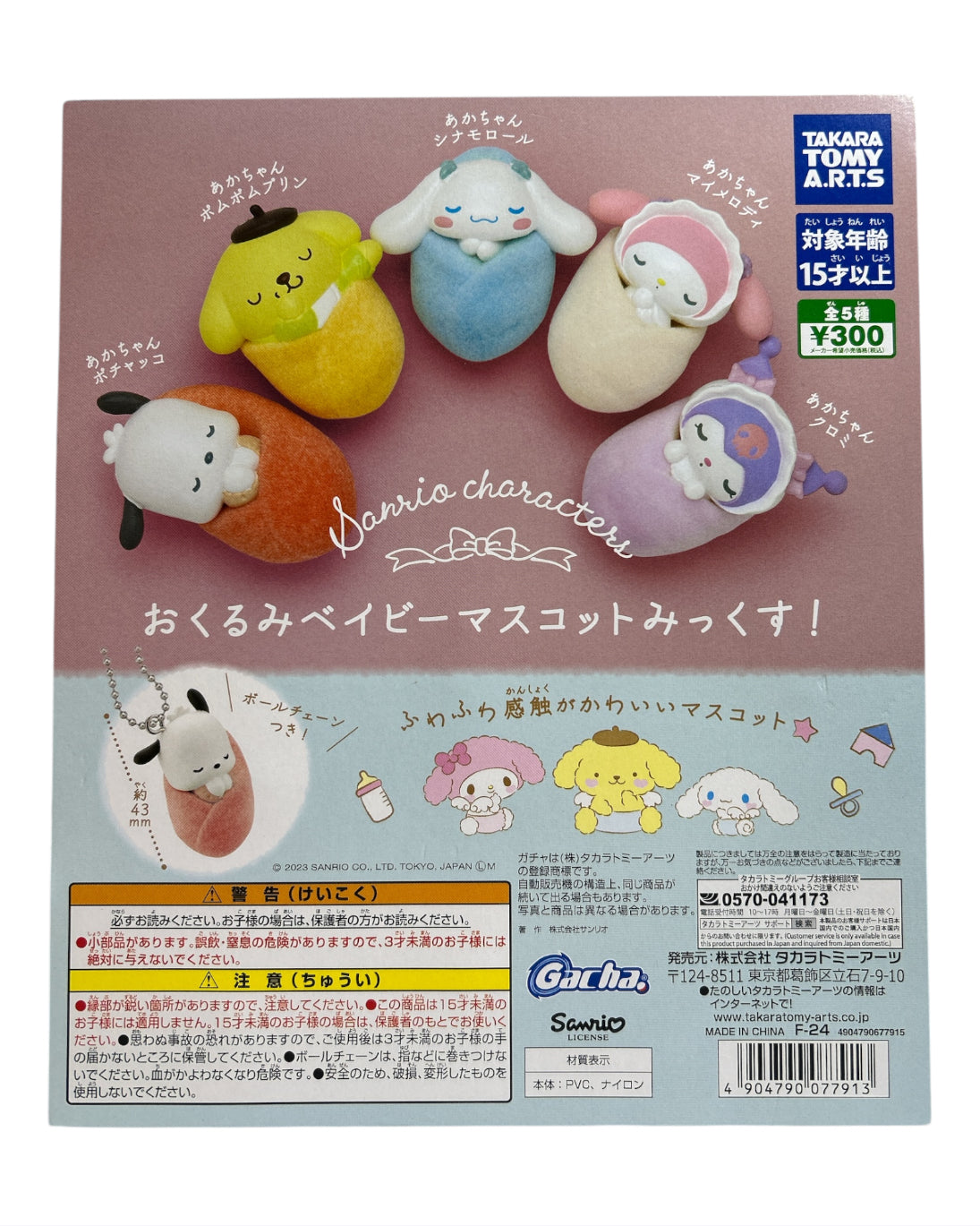 Get ready for cuteness overload with Sanrio Character Baby Mix! These adorable characters as babies will melt your heart. With a super soft, fluffy feel and convenient ball chain keychain style, they're perfect for collecting or gifting. Each one comes in a surprise Gashapon capsule for even more fun! (Collect them all!!!)